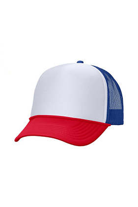 Structured. Five-panel with braid. Mid-profile. 3 1/2" crown. Double plastic tab closure. Tear away label.