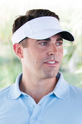Pre-curved 3-panel visor. Self-fabric hook and loop closure. Black absorbent Terry Cloth sweatband. Black under visor reduces glare.