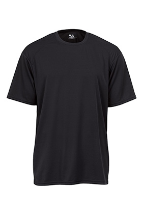Moisture management/antimicrobial performance fabric. Soft cotton-like feel for comfort. Double-needle hem with tack. Badger sport paneled shoulder for maximum movement. Badger heat transfer logo on left sleeve.