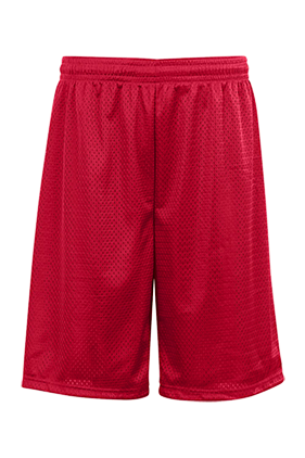 Pro-mesh with solid tricot liner. Athletic cut - superior fit. Covered elastic wasitband & drawcord.