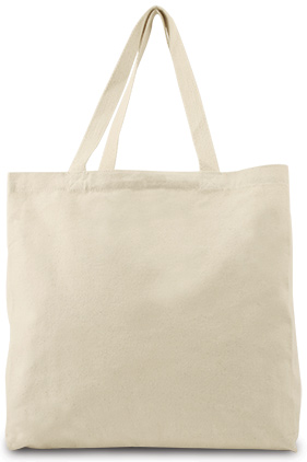 Extra long 26" cotton webbed handles reinforced stress point stitching. 5" square bottom gusset. Non-branded label/tag.