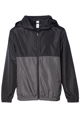 100% polyester youth windbreaker with interior water resistant coating. Waterproof Pressure Resistance: 600 mm. Matte finish #4 reverse coil zipper. Fine mesh hood liner. Soft to touch. Three panel hood & scuba neck. Welt pockets with mesh pocket bags. Elastic cuffs and waistband. Self neck tape with locker loop in center back. Screen print friendly.