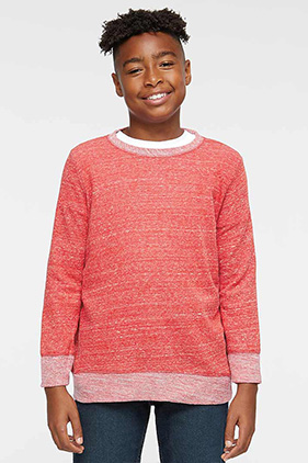 Lightweight. Super soft. Reverse loop texture on the collar, sleeve cuffs and bottom band. Flatlock stitched self-fabric textured loop collar. Cotton twill back neck tape. Back locker patch. Self-fabric textured loop elbow patches. Flatlock stitched self-fabric cuffs and bottom band. Flatlock stitched side seams. Side-seamed. Unisex youth fit. EasyTearâ„¢ label. CPSIA compliant tracking label in side seam.