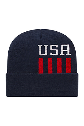 12" knit. Solid Cuff. Jacquard knit stars or USA and stripes.