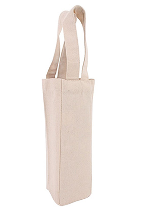 Holds 1 750ml bottle. 3" bottom and side gusset. Self-fabric handles. Non-branded label/tag.