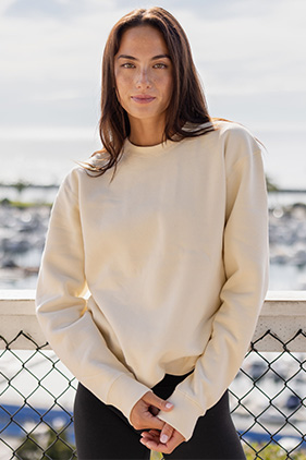 Heavyweight. Crew neck. Split stitch double needle sewing on all seams. Twill neck tape. 1x1 ribbing at cuffs and waistband. Generous fit. Tear away label.