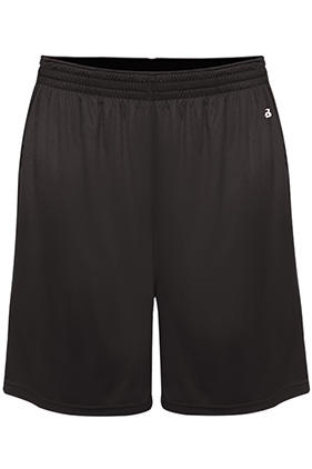 Double-needle hem. Two deep side pockets. Super soft interlock fabric for comfort. 2" Contrast elastic inner waistband. 8" inseam. Badger heat seal logo on left hip. Athletic cut and superior fit.