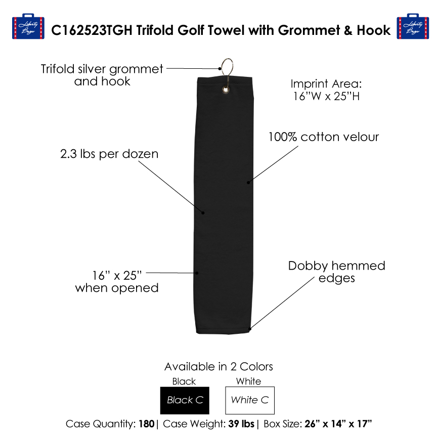 C162523TGH Carmel Towel Co. Trifold Golf Towel with Grommet & Hook