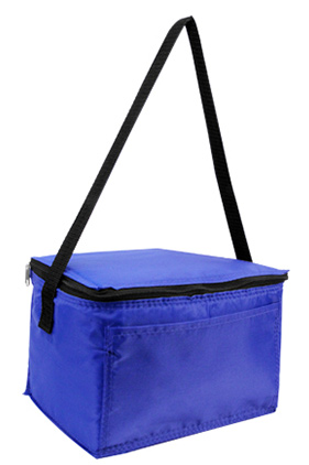Hielera de 6 paquetes. Con respaldo de PVC y aislado. Bolsillo delantero de 5" x 3". Manija negra de 23". Etiqueta/etiqueta sin marca.