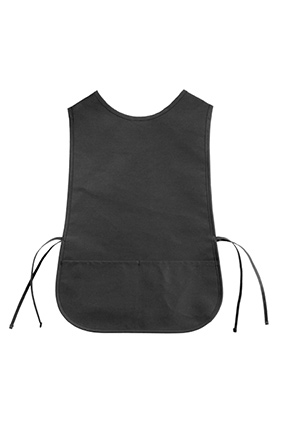 De peso pesado. Dos bolsillos, cada uno de 9" de ancho x 7,5" de alto. Cuatro lazos de cintura cada uno de 12,25" de largo (2 en cada lado). Parte inferior redonda recortada. Lazos laterales en la cintura. Bolsillo para bolígrafo. Área de impresión: 6" de ancho x 5,5" de alto. etiqueta/etiqueta de marca.
