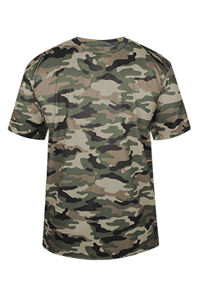 Rendimiento empaquetado en una camiseta de camuflaje.
