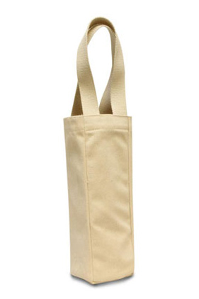 Capacidad para 1 botella de 750 ml. Refuerzo inferior y lateral de 3". Asas palmeadas a juego con la tela. Etiqueta sin marca.