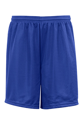 100% Polyester, 70 denier mesh with solid tricot liner. Athletic cut. Superior fit. Covered elastic waistband and drawcord. Seven-inch inseam.