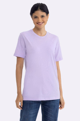 Fabric blend creates unmatched softness and comfort. Perfect for sublimation and screen printing. Self 3/8" shoulder-to-shoulder binding. Set-in collar for more printing space. Side-seamed. Classic fit. Tear away label.