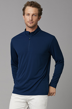 unisex long sleeve 1/4 zip pullover. Moisture-wicking, anti-microbial properties.