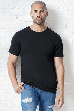 5.5 oz. (187g), 100% combed ring-spun cotton, premium jersey. White is sewn with 100% cotton thread. CVC colors: 60/40 combed ring-spun cotton/polyester. Heathers: 90/10 combed ring-spun cotton/polyester.