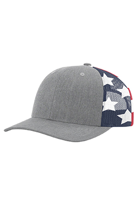 Front: 60/40 cotton/polyester, twill. Back: 100% polyester, trucker mesh. Green Camo: Front: 97/3 cotton/spandex, twill. Back: 100% polyester, trucker mesh. Mossy Oak Camo: Front: 100% polyester, twill. Back: 100% polyester, trucker mesh.
