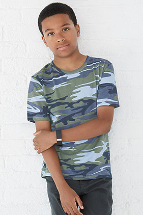 Ribbed collar. Shoulder-to-shoulder self-fabric back neck tape. Double needle sleeves and bottom hem. Side-seamed. Youth unisex. EasyTear™ label. CPSIA compliant tracking label in side seam.