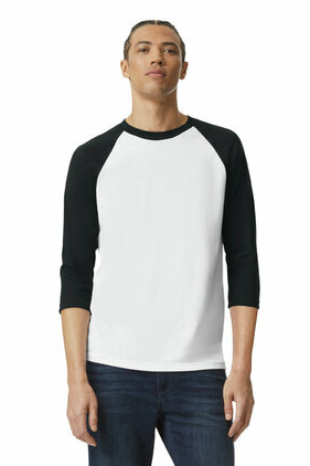 Contrasting 3/4 raglan sleeves. Classic width. Rib collar. Side-seamed. Relaxed fit. Tear away label; transitioning to recycled material.