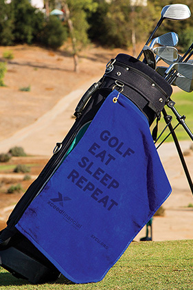 This golf towel will "drive" your business down the fairway!