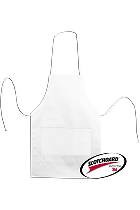 Two pockets each measuring 7" W x 7.25" H. Adjustable neck and tailored look by pulling a single strap (approx length of entire tie/strap one end to other 98.5"). Trimmed butcher style bottom. Imprint Area: 5”W x 5.5”H. Non-branded label/tag.