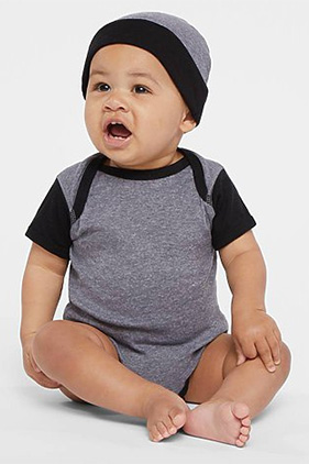 Los bodis lisos de una pieza tienen hombros caídos para que sea más fácil para los padres muchas veces al día tener que cambiar la ropa del bebé. El blanco está cosido con hilo 100% algodón. Costuras planas. Ribete acanalado de doble aguja en cuello, hombros, mangas y abertura de pierna. Innovador cierre de tres broches. Infantil unisex. Costuras laterales. Etiqueta EasyTear™. Etiqueta de seguimiento que cumple con CPSIA en la costura lateral.