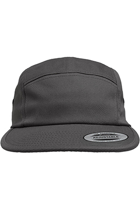 Sin estructura. Cinco paneles. Perfil bajo. Ojales metálicos. Visera plana. Cierre de clip con correa de nailon en la parte trasera.