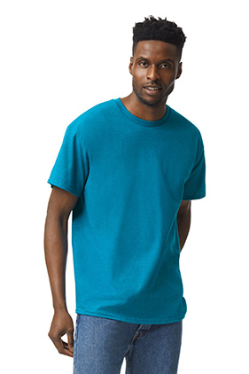 180 g (5.3 oz), 100 % algodón estadounidense, tejido de punto jersey. Preencogida. Gris ceniza: 99 % algodón/poliéster estadounidense. Colores antiguos/Gris deportivo: 90 % algodón/poliéster estadounidense. Colores jaspeados/atardecer/neón/de seguridad: 50 % algodón/poliéster estadounidense. Verde seguridad: cumple con las normas de alta visibilidad ANSI/ISEA 107. El contenido de fibra varía según el color. Fabricada con tintes de bajo impacto con certificación OEKO-TEX.