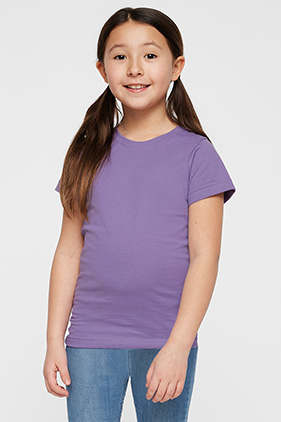 Cuello redondo. Cuello de canalé pespunteado. Cinta de nuca del mismo tejido. Mangas y dobladillo inferior de doble aguja. Con costura lateral. Ajuste de chicas jóvenes. Etiqueta EasyTear™. Etiqueta de seguimiento compatible con CPSIA en la costura lateral.