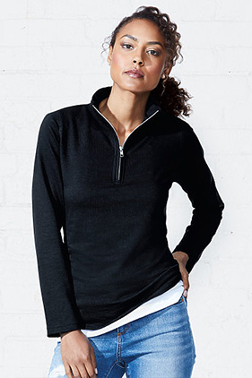 Lightweight. 1/4 zip women's pullover. Hemmed sleeves and shirttail bottom give these basic sweatshirts an upscale look. Self-fabric back neck tape. Flatlock stitched neckline and armholes. Covered zipper. Double needle sleeves and shirt tail bottom hem. Side-seamed. EasyTearâ„¢ label.