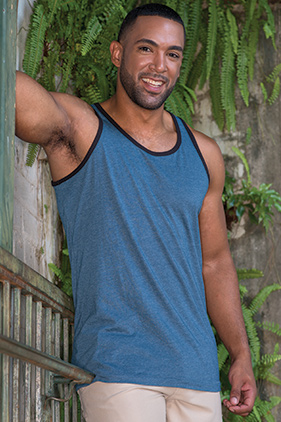 Black piped neck and armhole. Railroad stitched bottom hem. Modern Fit.