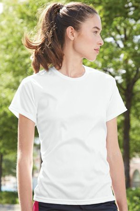 100% polyester, performance fabric. Moisture management. Antimicrobial/Odor protection.