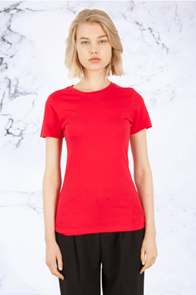4.6 ounce premium fabric women's crew neck t-shirt. Shoulder to shoulder neck tape.