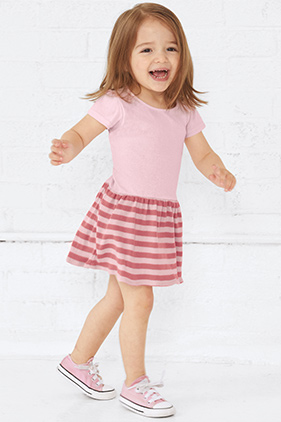 Your little one will be adorable and comfortable in this 100% combed ring-spun cotton 1x1 baby rib dress!