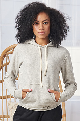 Midweight. Contrast 3/8" back neck binding. Three piece hood with DTM* drawcord. Jersey lined hood. 1x1 baby rib set-in sleeve cuffs and waistband. Kangaroo pocket. Locker patch. Classic fit. Tear away label.